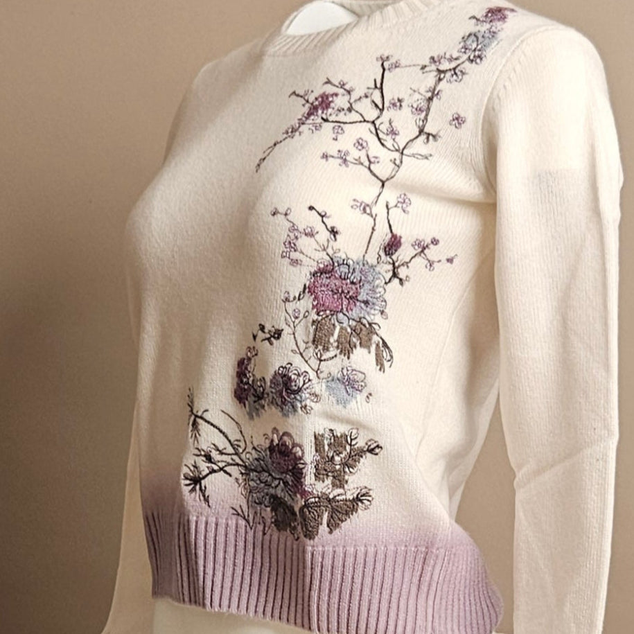 This charming Christian Dior sweater brings a burst of joy with its vibrant multicolor floral motif, perfect for brightening up any outfit. Crafted with care, it combines classic elegance with a playful twist, making it an ideal choice for those who love to stand out. Whether you're dressing up for a casual day out or adding a splash of color to your work wardrobe, this sweater promises comfort and style in every stitch.