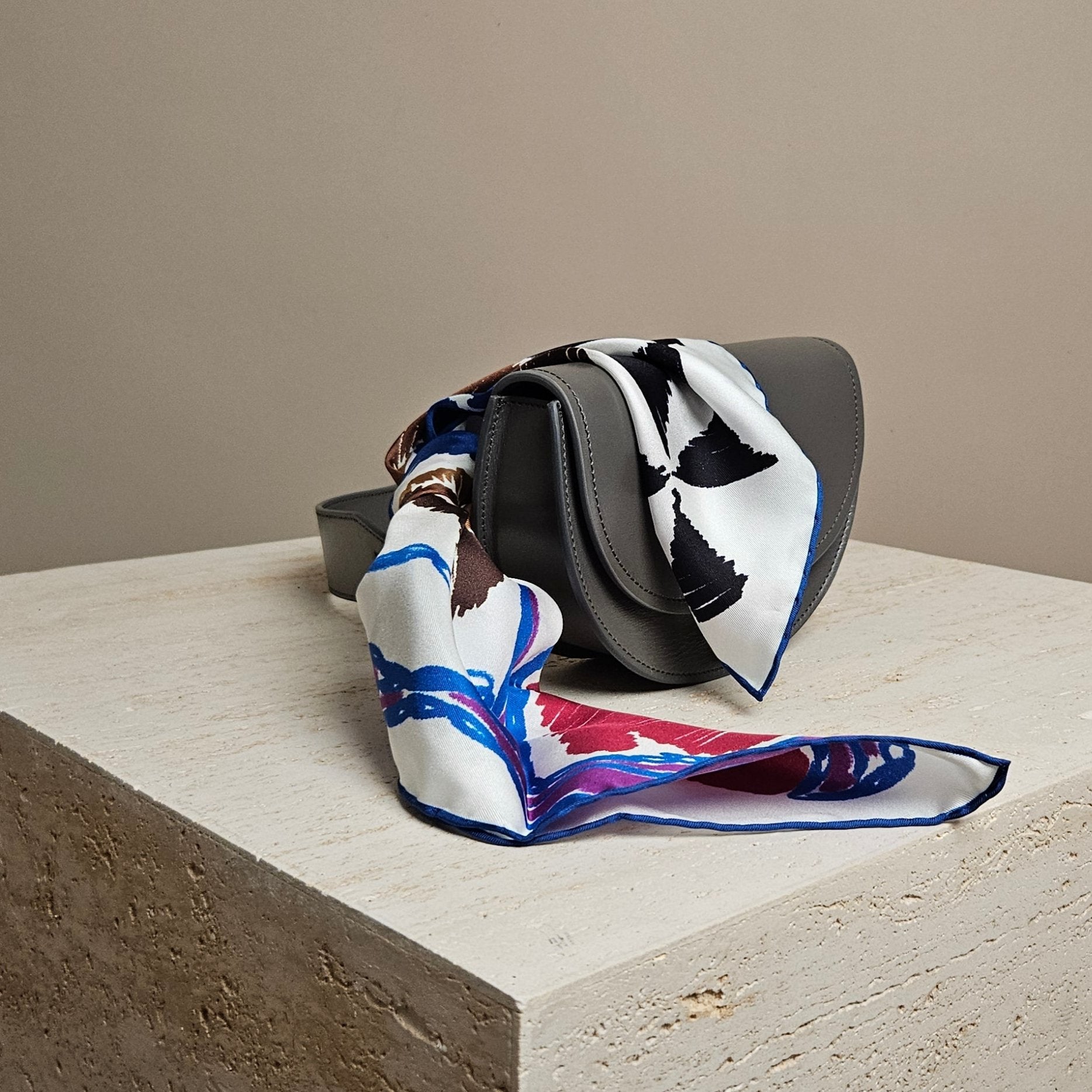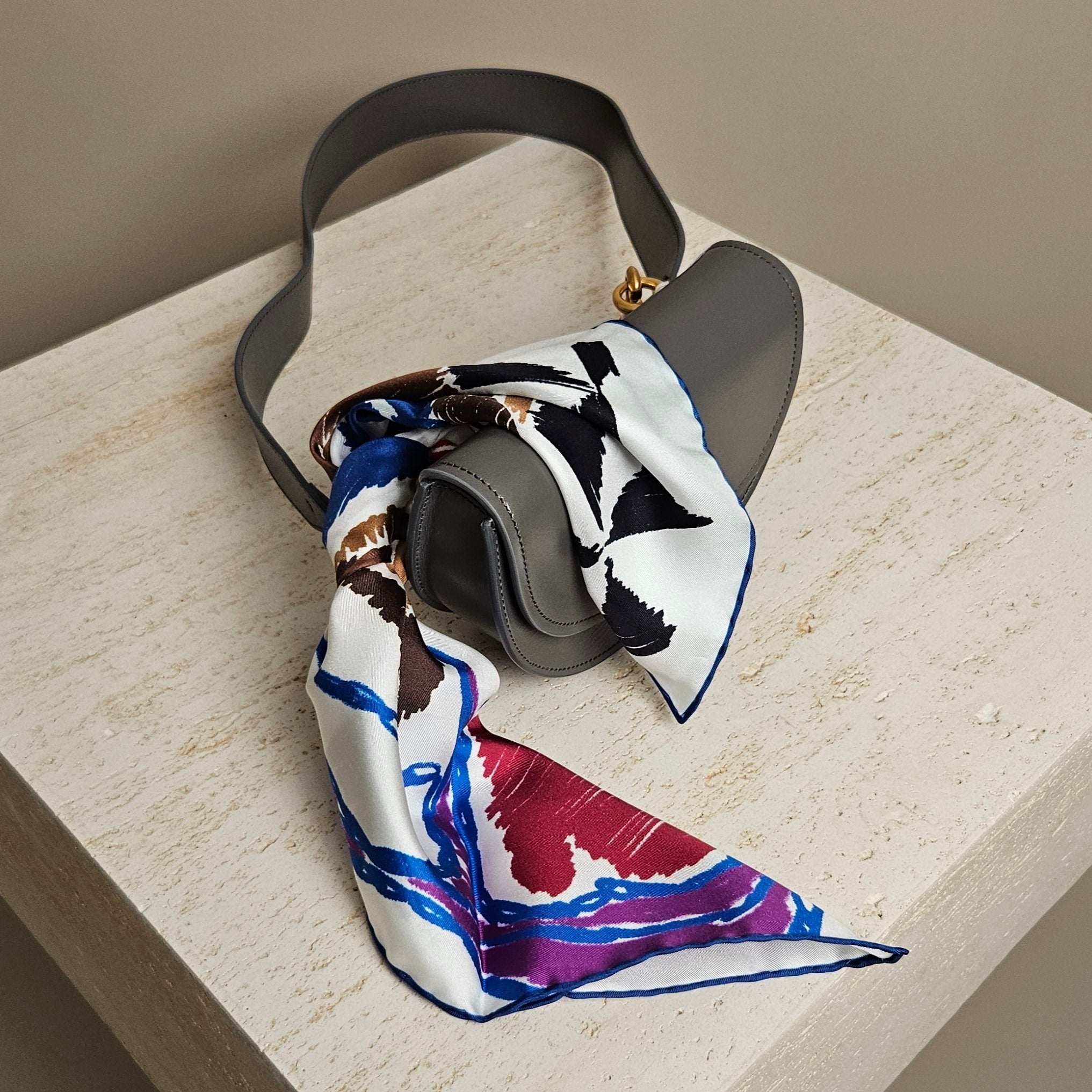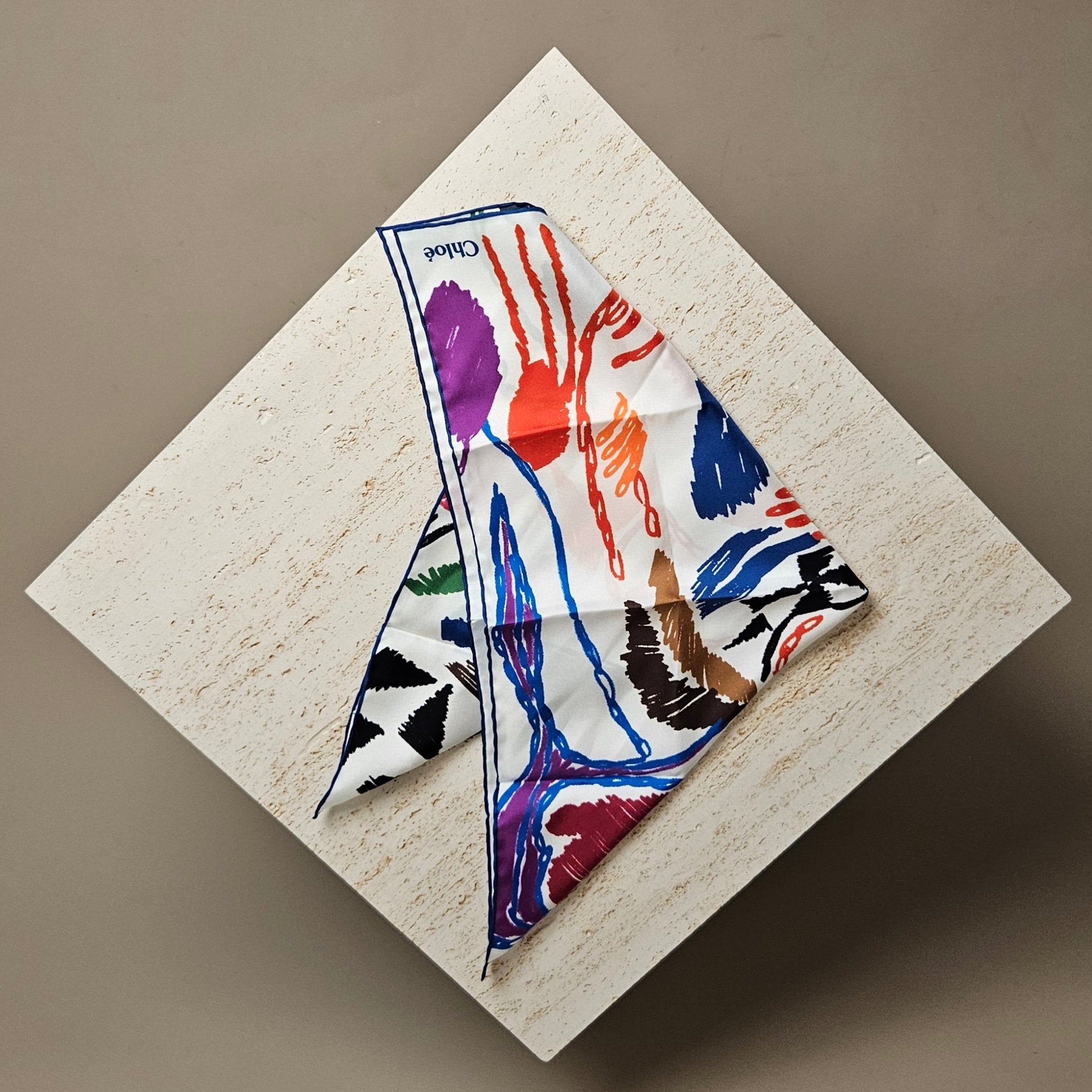 Made with ethically sourced silk, this square scarf features a unique bandana size, perfect for wearing on your head, neck, or bag. The bold print portrays a scene from Queen Esther's life, perfectly complementing the colorful patchwork of the ready-to-wear collection. Hand-rolled edges add a luxurious touch to this elegant accessory, complete with the signature Chloé logo.