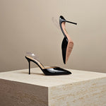 Elevate your style and stand out from the crowd in these stunning heels. With a sleek design featuring a transparent panel and a flattering pointed toe, these shoes will give you a leg up in any outfit. Perfect for adding a touch of elegance to your wardrobe and turning heads wherever you go.