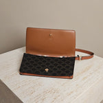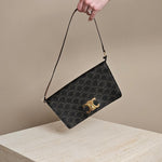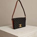 Experience understated elegance with the Celine Trapeze Canvas Triomphe Shoulder Bag in classic brown canvas. Featuring the iconic Triomphe pattern, this bag combines timeless design with functional sophistication. Its structured silhouette and spacious interior make it perfect for both everyday use and refined outings, offering a stylish blend of practicality and Parisian chic.
