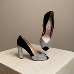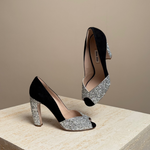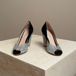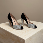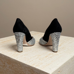 Get ready to add some serious sparkle to your shoe collection (and your life) with the Miu Miu Glitter pump. Not only will you look effortlessly chic, but you'll also radiate an air of playful sophistication with every step.