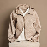 This cozy reversible hooded jacket features a double-faced wool and cashmere blend in a gentle seasonal hue, with a subtle tonal Monogram print on one side. Designed in an oversized style with a snug waist and cuff details, it includes two pockets and a double zipper accented with a Monogram pull for a fun twist.