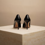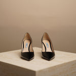 A sleek and sophisticated staple for every wardrobe. Crafted from high-quality patent leather with a textured finish, this pump exudes timeless elegance. Its classic black hue makes it a versatile choice for any occasion, while the pointed toe and slender heel add a touch of refinement. Whether paired with a power suit for the boardroom or a little black dress for a night on the town, the Prada Black Textured Patent-Leather Pump effortlessly elevates any ensemble with its understated chic.