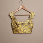 Prada Yellow Metallic Floral Jacquard Crop Top