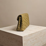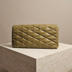 Designed with a luxurious puffy silhouette, the Saint Laurent Sade Clutch in green leather adds a modern twist to any evening ensemble. The plush texture of the quilted leather and the gold-tone YSL logo give this clutch a refined, elevated look. Whether you're pairing it with a sleek dress or jeans, this versatile piece effortlessly elevates your style.