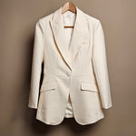 A Quintessential blend of luxury, sophistication, and impeccable craftsmanship. Designed for the modern women who values both style and substance, this suit is perfect for the office, formal events, or any occasion where you want to make a lasting impression.