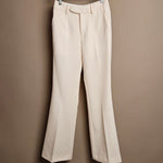 Crafted from the finest wool, this tailored suit offers a soft, breathable feel that drapes beautifully on the body, the jacket features a structured silhouette with sharp lapels and expertly tailored seams, creating a flattering shape that enhances your figure. The matching trousers are designed with a sleek fit ensuring comfort and style with every step.