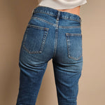 The Row Mid Rise Boyfriend Jeans are the epitome of effortless chic and casual sophistication. Designed with a relaxed fit, these jeans offer a contemporary take on the classic boyfriend style, making them a versatile addition to any wardrobe. Crafted from high-quality denim, they provide both comfort and durability, ensuring they will be a staple for years to come.