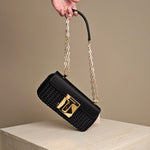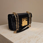 001 Chain Shoulder Bag Black Gold Satin/Leather