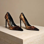Make a bold statement with the Tom Ford Leopard Print Leather Pump in brown leather and fur. The fierce leopard print adds a touch of wild sophistication, while the sleek pointed toe and sculpted heel create an undeniably chic silhouette. Crafted from luxurious leather and fur, these pumps offer the perfect balance of daring style and high-end elegance, making them the ideal choice for the woman who embraces both luxury and adventure.