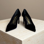 Elevate your evening look with the Tom Ford T Screw Velvet Pump in luxurious blue suede. Featuring the signature T-screw detail and a sleek, pointed toe, these pumps blend modern edge with classic elegance. The rich velvet material adds a touch of opulence, while the sculpted heel provides height and sophistication, making these pumps perfect for special occasions or dressing up a night out.