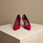 Add a pop of luxury to your wardrobe with the Tom Ford T Screw Velvet Pump in soft pink velvet. The iconic T-screw detail and pointed toe create a striking silhouette, while the rich velvet fabric exudes elegance and sophistication. Perfect for evening events or special occasions, these pumps bring a bold yet refined touch to any ensemble, making them a must-have for the fashion-forward woman.