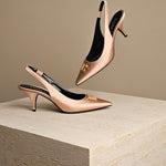 TF Logo-Plaque Slingback Pump Rosegold Satin