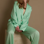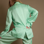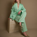 Step into the spotlight with this vibrant mint green satin suit from Vince. Its silky smooth fabric catches the light beautifully, adding a playful shimmer to your look. Perfect for turning heads at any event, this suit combines bold color with sleek tailoring to keep you feeling confident and stylish. Whether you're dressing up for a party or adding a splash of fun to your work wardrobe, this minty fresh ensemble is your new go-to for effortless charm and flair.