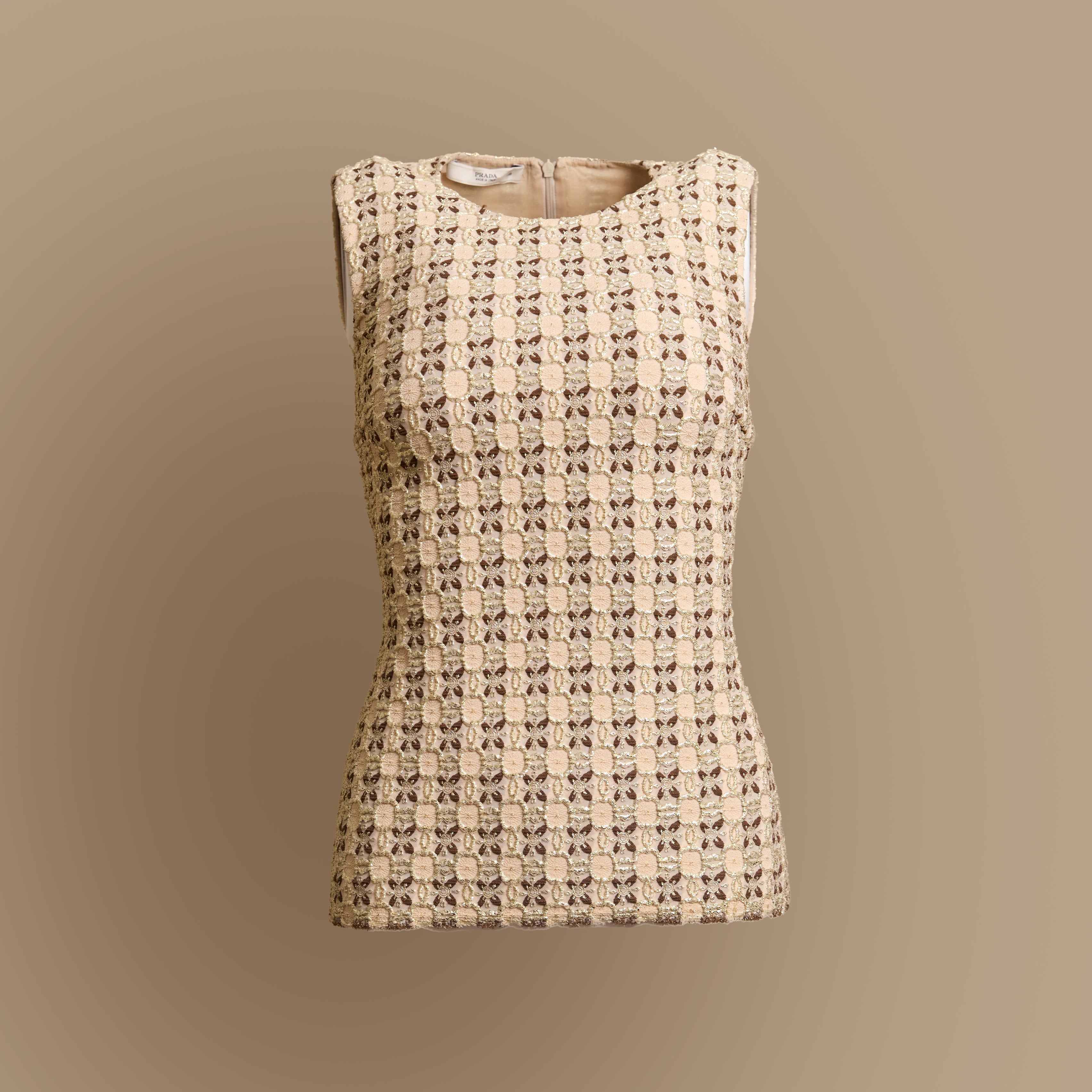 Prada Yellow Metallic Floral Jacquard Crop Top