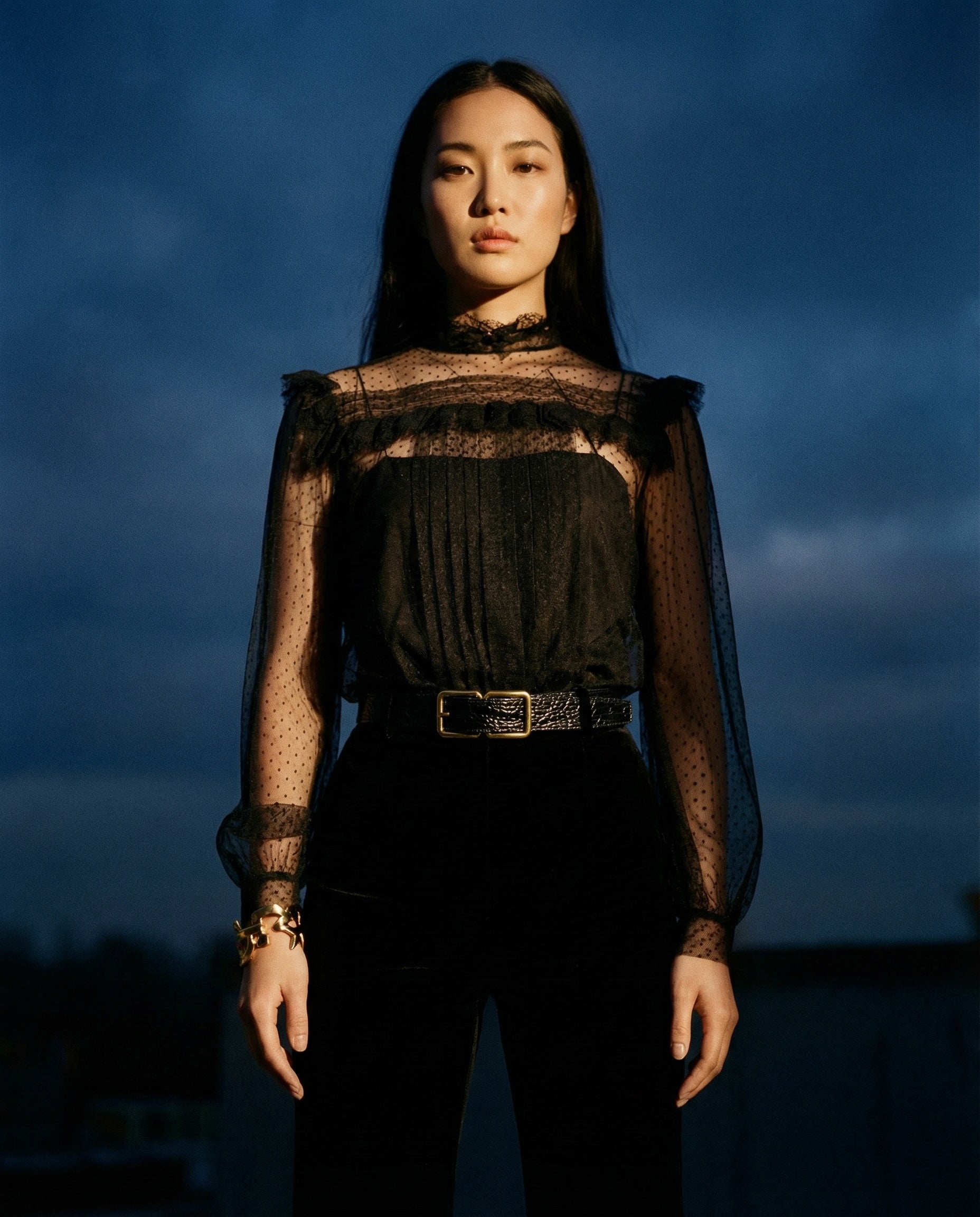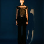 This Miu Miu sheer blouse provides a light and airy feel, perfect for warm weather or a sophisticated evening look. The sheer fabric adds an elegant touch to any outfit, while keeping you cool and comfortable. Made with high-quality materials and expert craftsmanship, this blouse is a must-have for any fashion-forward wardrobe.