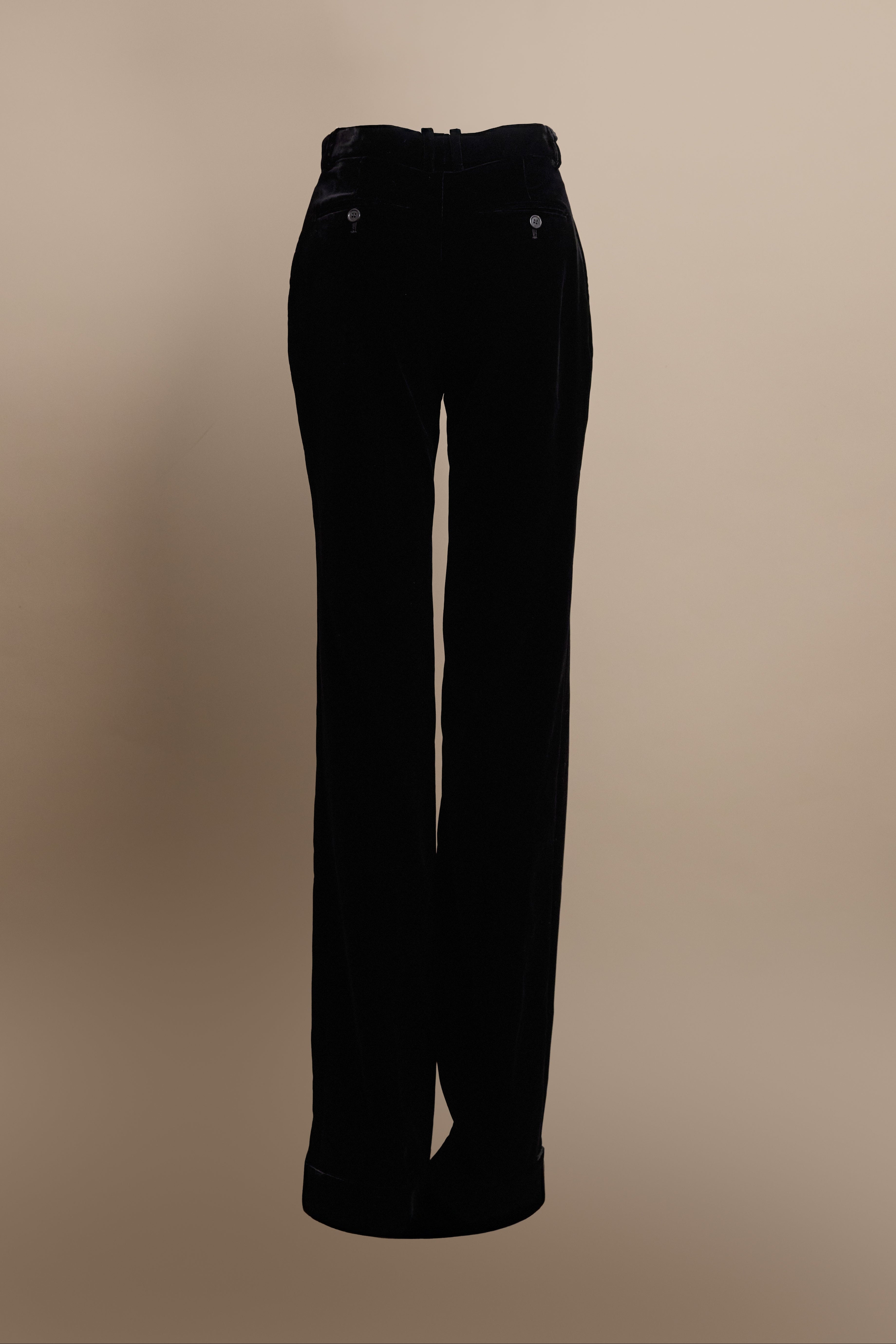 Elevate your wardrobe with these luxurious Saint Laurent straight-cut velvet trousers—the ultimate power move for anyone who refuses to blend in. Crafted from sumptuous velvet fabric, these trousers deliver a sophisticated silhouette that's equal parts elegant and undeniably bold.