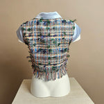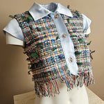 Elevate your style with this Chanel cropped shirt, designed to bring a fun and flirty edge to your wardrobe. The perfect blend of high fashion and playful charm, it pairs effortlessly with high-waisted jeans or skirts for a chic, modern look. Whether dressing up for a casual day out or adding a unique statement to your outfit, this cropped shirt invites you to embrace your playful side with a splash of luxury. Make every day stylishly unexpected.