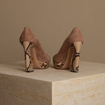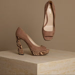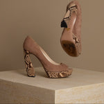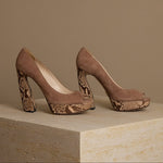 Add a bold twist to your footwear collection with these Prada peep toes featuring a striking snake skin heel. The playful open-toe design lets you show off your pedicure while the exotic texture of the heel adds an unexpected edge to your look. Perfect for turning heads at parties or elevating your everyday style, these shoes combine luxury with a fun, adventurous spirit. Slip them on and step out with confidence, knowing your feet are dressed to impress with a touch of wild sophistication.
