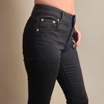 Crafted from a high-quality stretch denim, these jeans offer both comfort and flexibility, allowing for ease of movement while maintaining a flattering fit. The classic black hue provides a versatile base that can be dressed up or down, making them suitable for various occasions, from casual outings to more polished events.