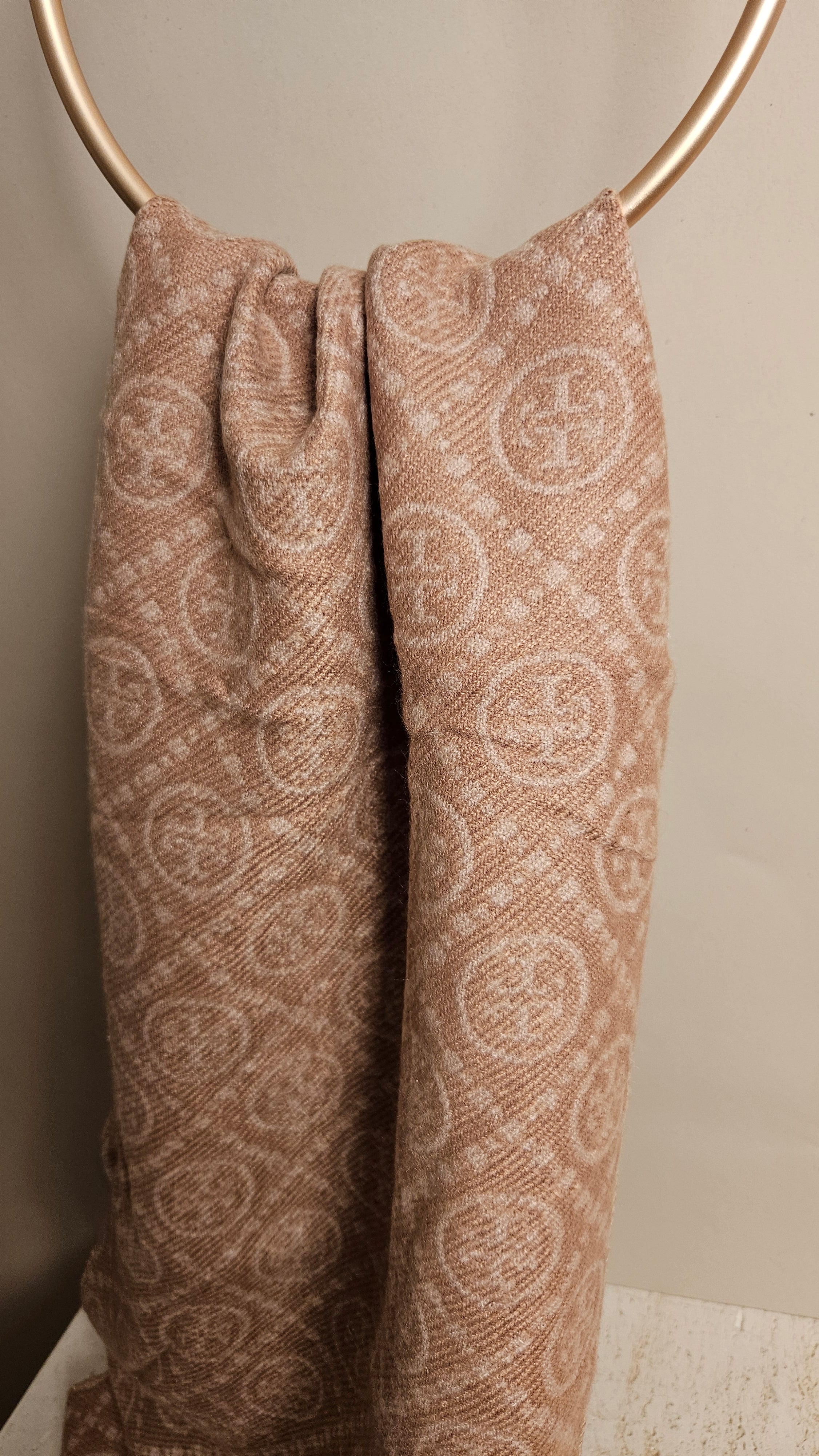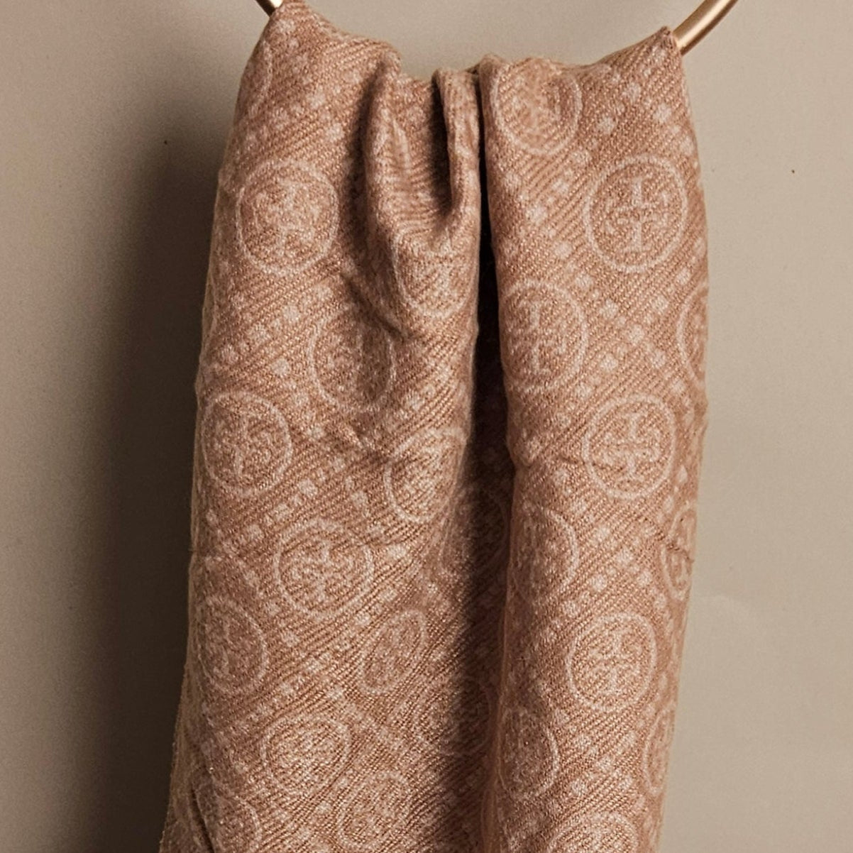 Wrap yourself in cozy charm with the Tory Burch Logo-monogrammed Wool-blend Scarf. This one-size wonder blends soft wool with a playful pattern of iconic logos, adding a dash of flair to any outfit. Perfect for chilly days, it keeps you warm while showing off a signature style that’s effortlessly fun. Whether tossed over your shoulders or snugly wrapped around your neck, this scarf turns everyday warmth into a playful statement.
