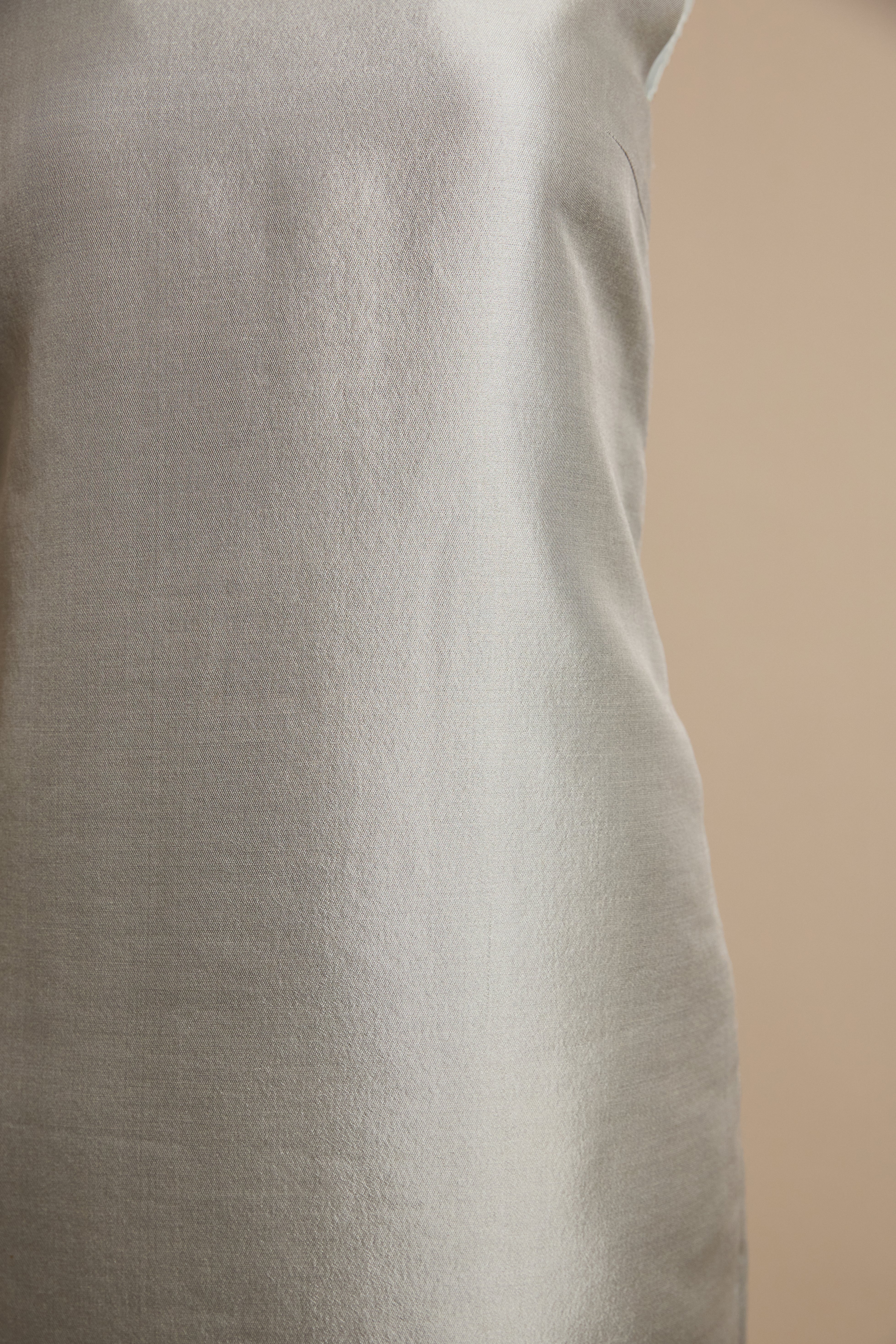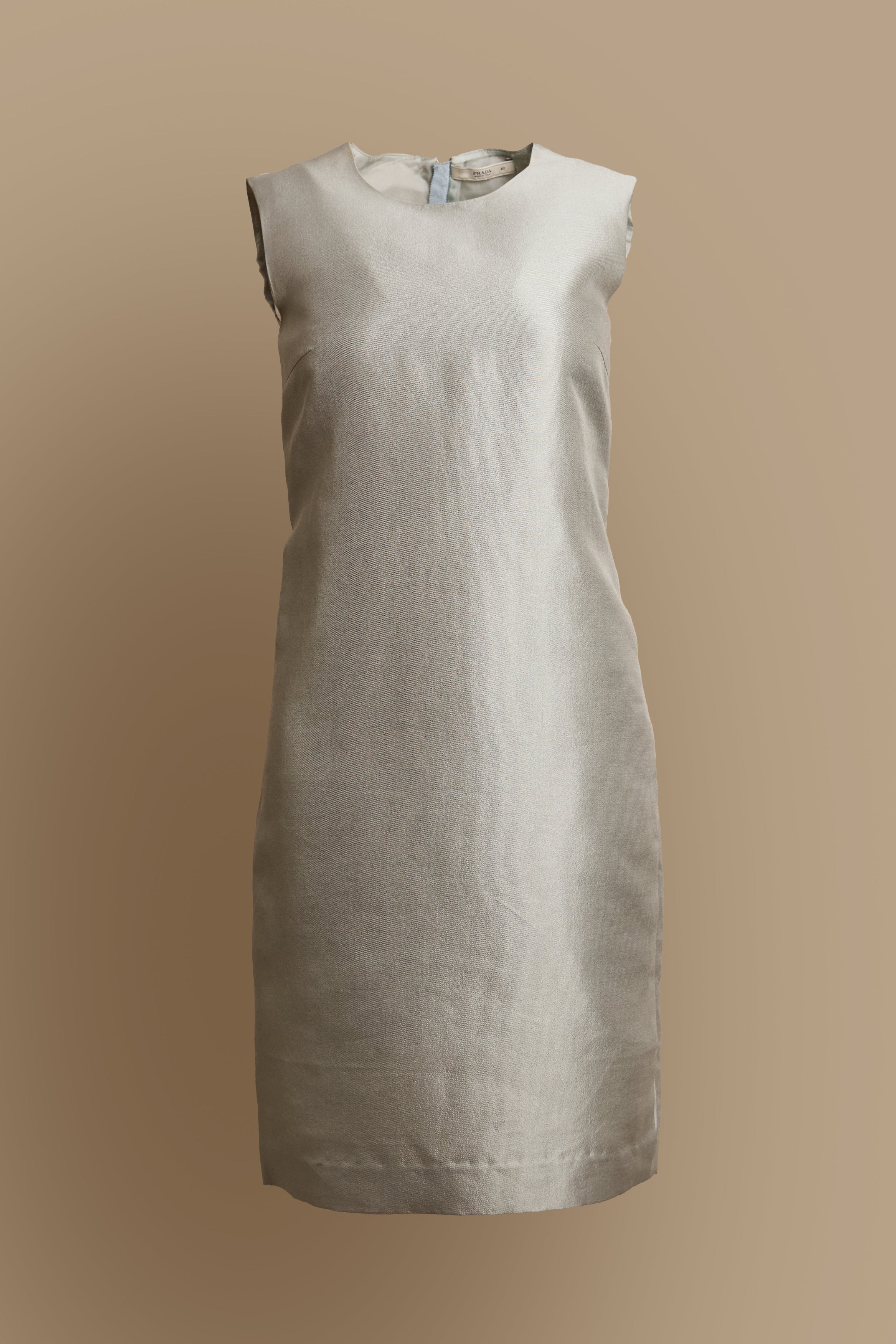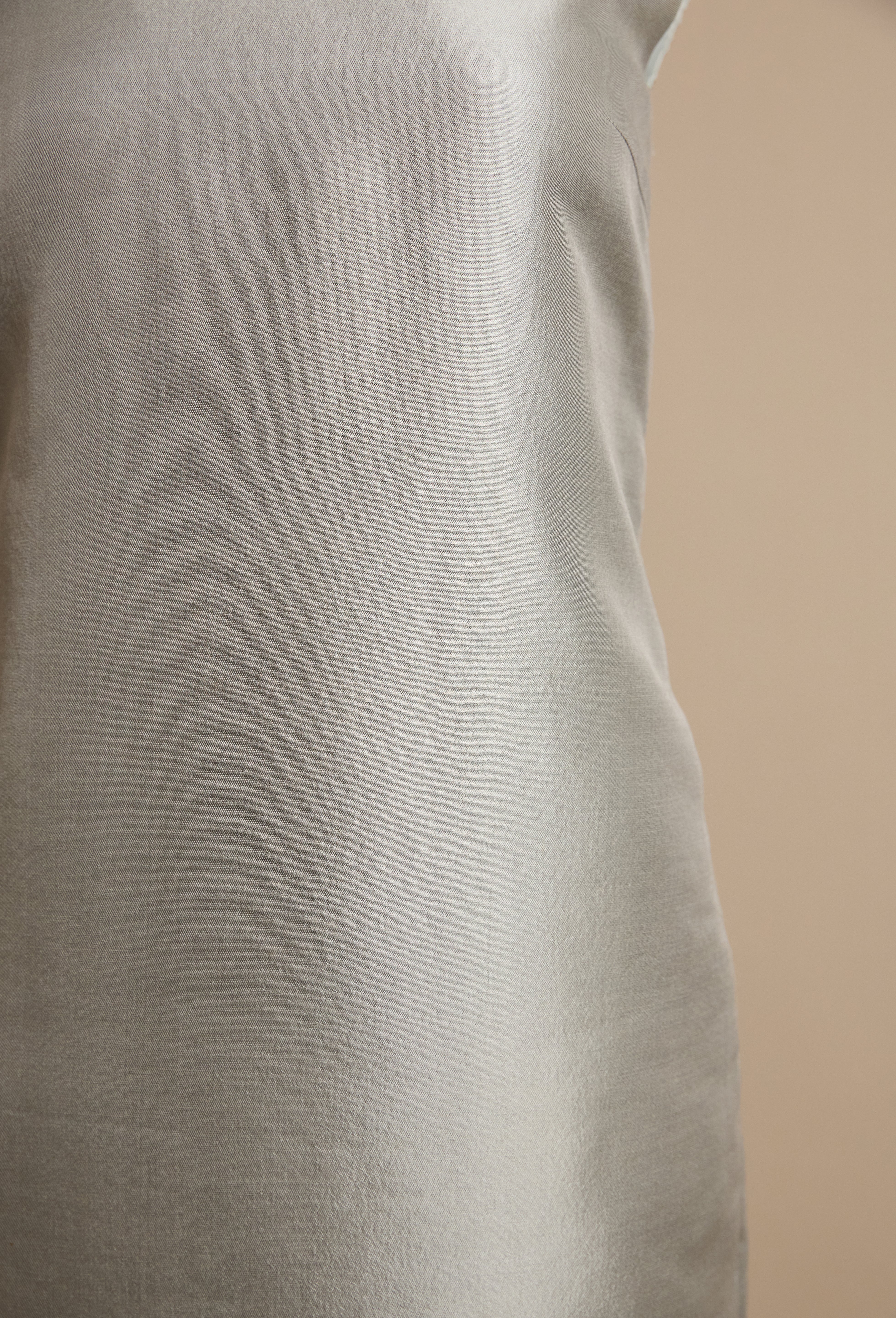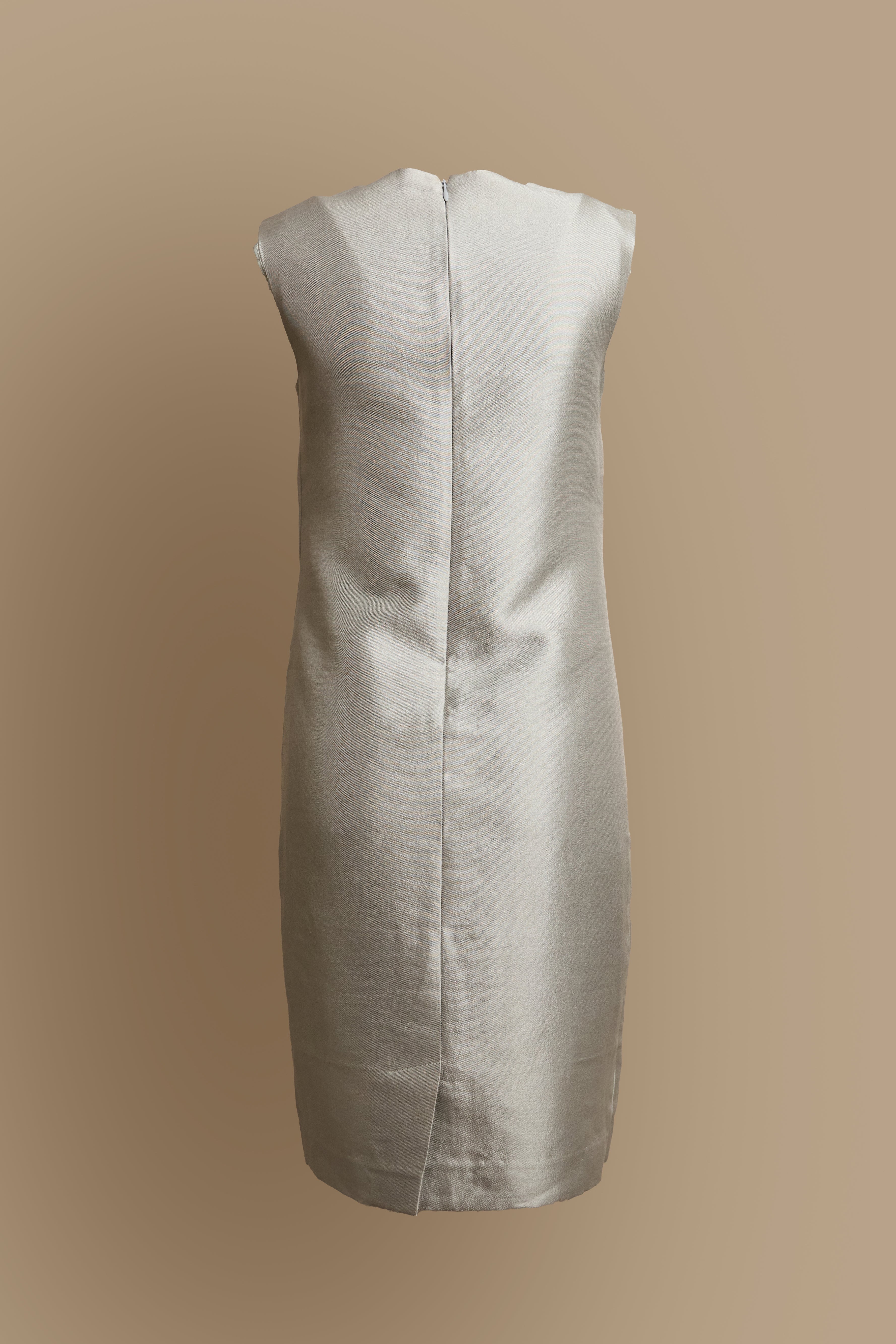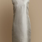 Crafted from luminous silver silk, this dress moves with effortless grace, perfect for turning heads at any event. Its clean lines and minimalist design allow you to accessorize boldly or keep it simple for a chic, modern look. Whether you’re dancing the night away or making a stylish statement, this shift dress effortlessly blends comfort with high-fashion flair. Elevate your wardrobe with a piece that’s as fun as it is timeless.