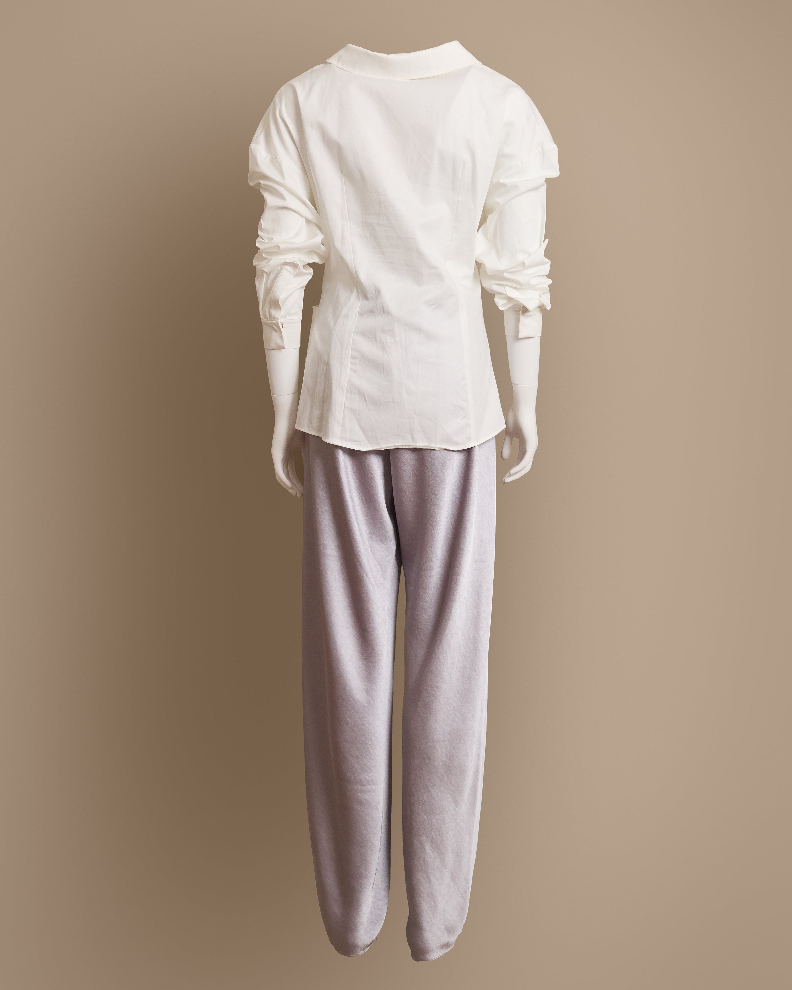 Silver Satin Trousers with Zipper