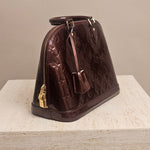Discover the Alma Bag in a stunning burgundy patent leather that turns heads wherever you go. Crafted by Louis Vuitton, this playful yet sophisticated accessory adds a pop of color and shine to any outfit. Its structured silhouette keeps your essentials organized, while the glossy finish brings a fun, luxurious vibe. Perfect for day-to-night adventures, the Alma Bag combines timeless elegance with a touch of spirited charm. Elevate your style with this vibrant, eye-catching piece that's as versatile as it is beautiful.