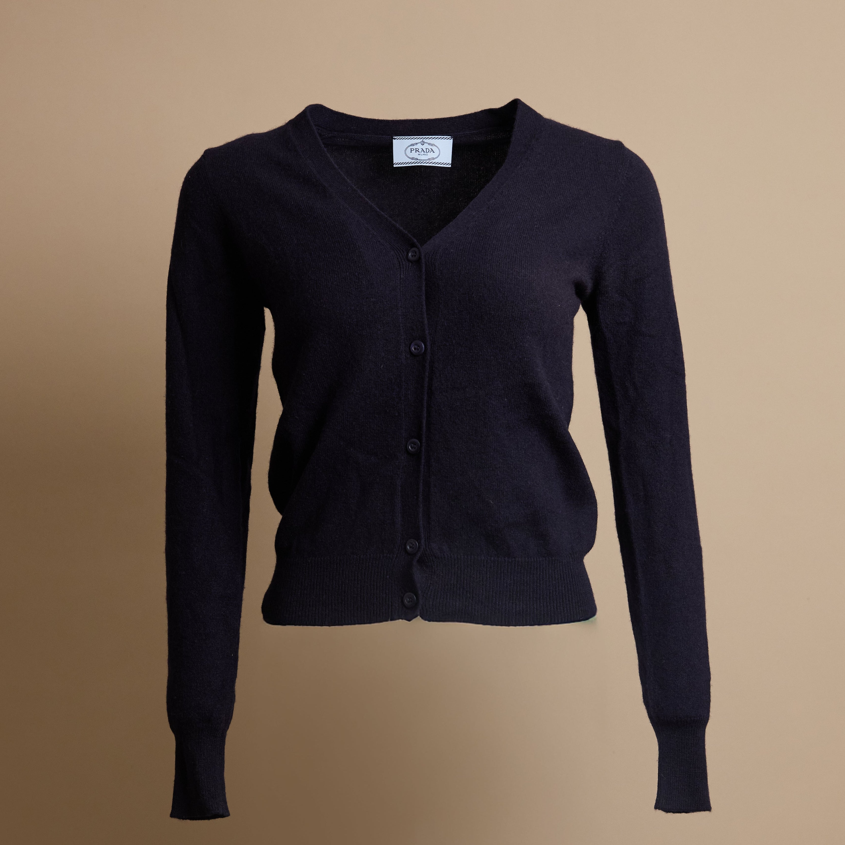 Wrap yourself in cozy luxury with this Prada navy cardigan. Perfect for layering, its soft fabric keeps you warm while adding a touch of effortless style to any outfit. Whether you're out for brunch or curling up with a book, this versatile cardigan is your new go-to for comfort and chic vibes.
