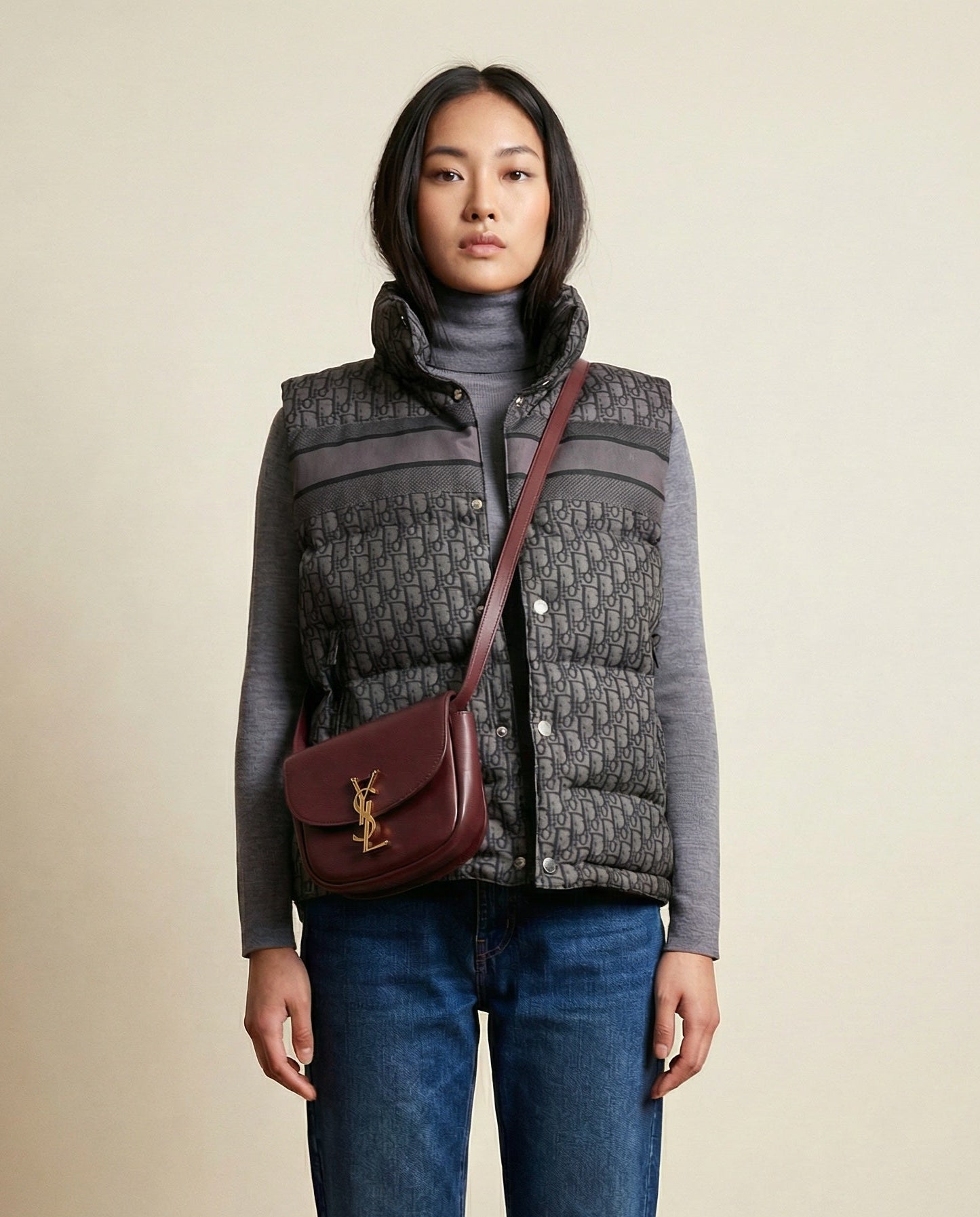 With its elegant Army Green shade and sleek design, the Saint Laurent Kaia Small Leather Shoulder Bag exudes modern sophistication. Crafted from luxurious calfskin leather, it features a minimalist flap style, highlighted by a signature YSL knocker. The compact size and adjustable strap make it a versatile accessory that adds an understated yet powerful statement to any outfit.