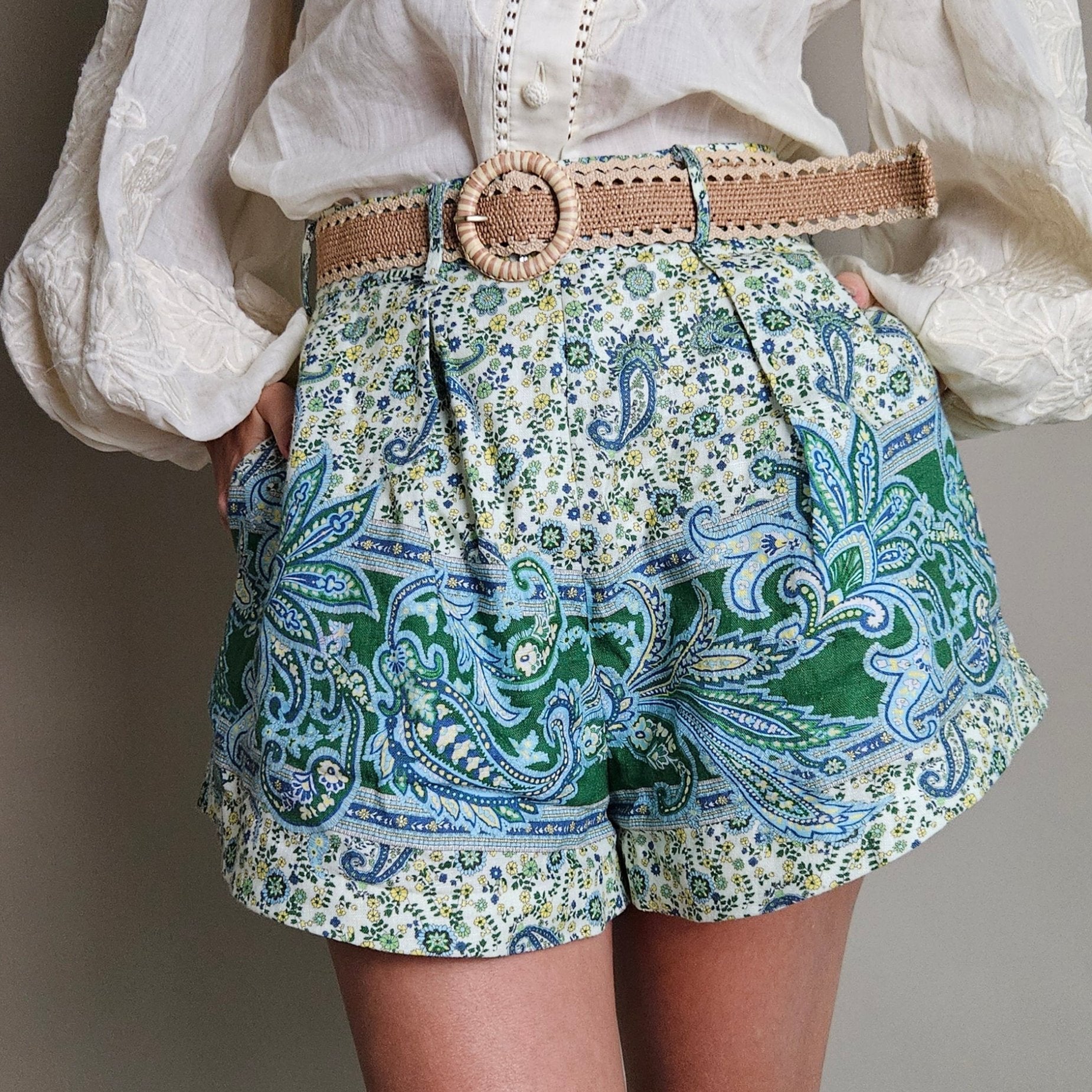 Crafted from premium, breathable linen, these shorts offer a lightweight feel that keeps you cool and comfortable on sunny days. The rich green hue adds a refreshing pop of color, making them a versatile piece that can be dressed up or down. The unique tuck detailing enhances the silhouette, providing a flattering fit that accentuates your waist while allowing for ease of movement.